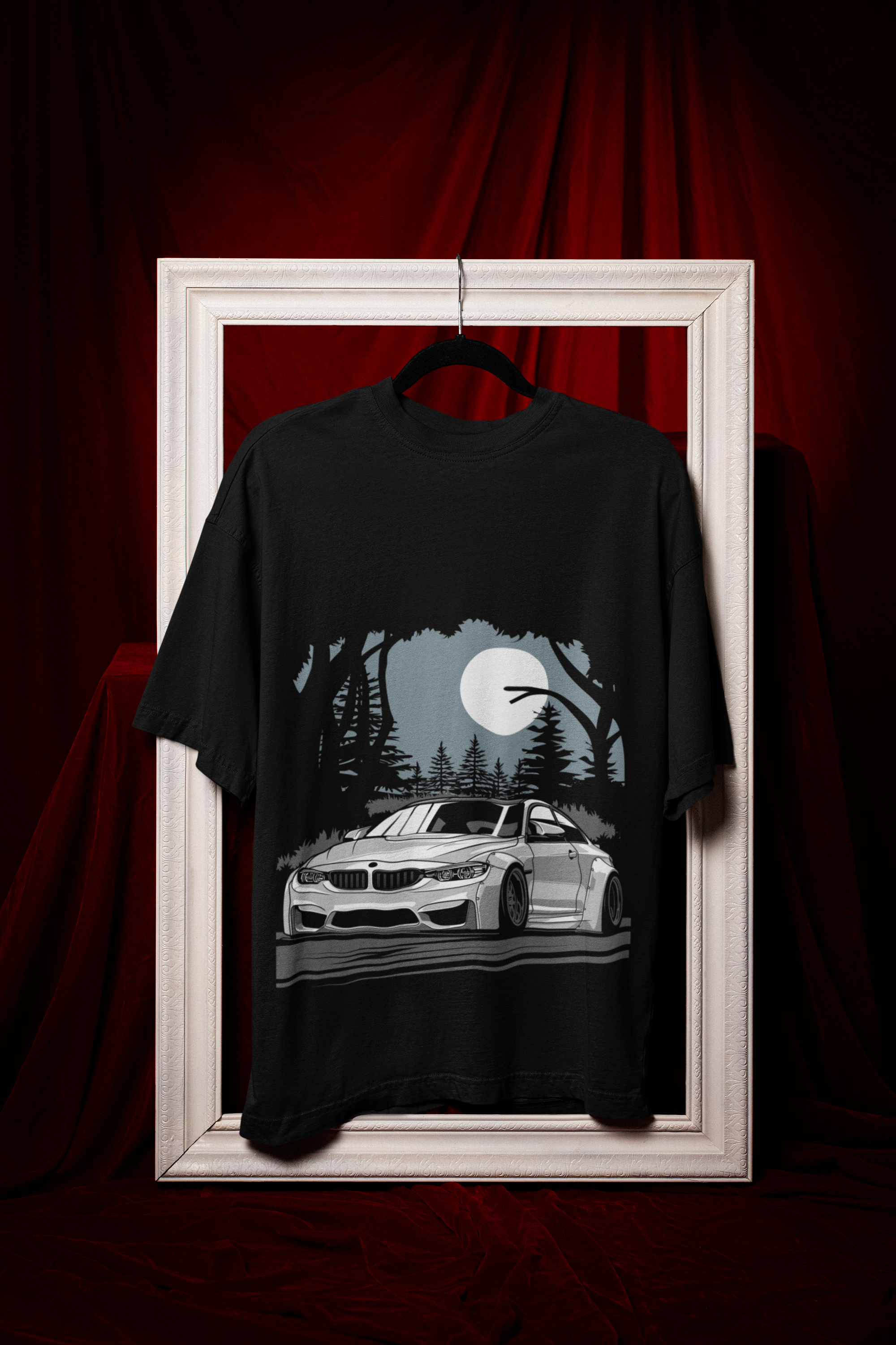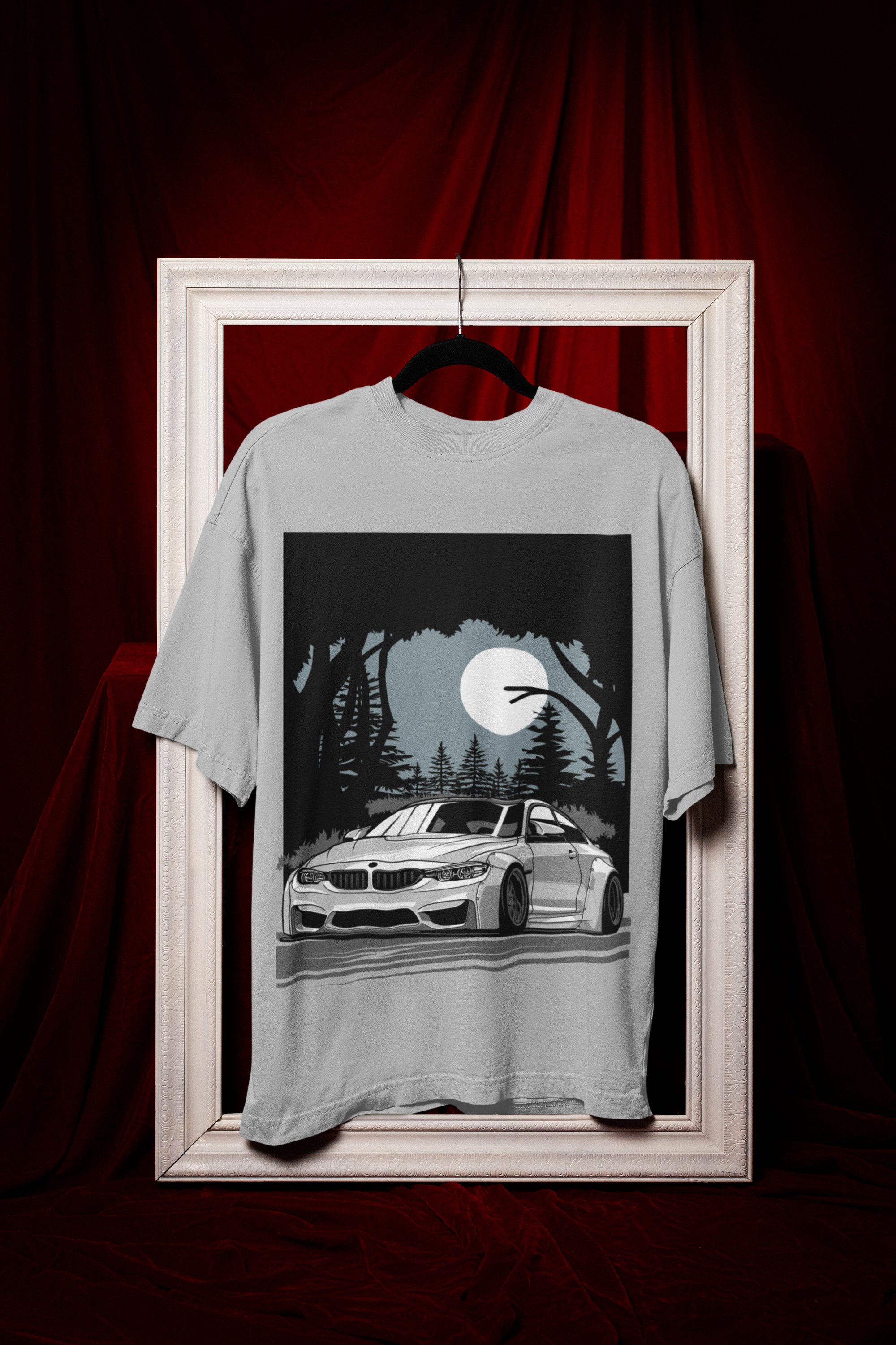 Bring the thrill of German engineering and night drives to your streetwear with this BMW M4 Oversized T-Shirt. Featuring a bold graphic of a white BMW M4 under the moonlight in a forest setting, this tee perfectly fuses car culture with urban fashion. Made with premium 240 GSM 100% cotton, it offers heavyweight comfort with a relaxed oversized fit and dropped shoulders for a stylish silhouette.